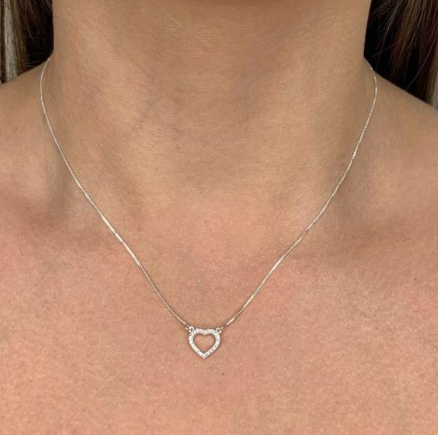 Colar elegante e minimalista, com corrente fina e pingente em formato de coração vazado, cravejado com pequenas pedras que garantem um brilho sutil e sofisticado. Perfeito para quem ama acessórios delicados, esse colar traz um toque de romantismo e leveza, ideal para usar no dia a dia ou em ocasiões especiais. Combina facilmente com outros colares ou pode ser usado sozinho para um visual discreto e charmoso.