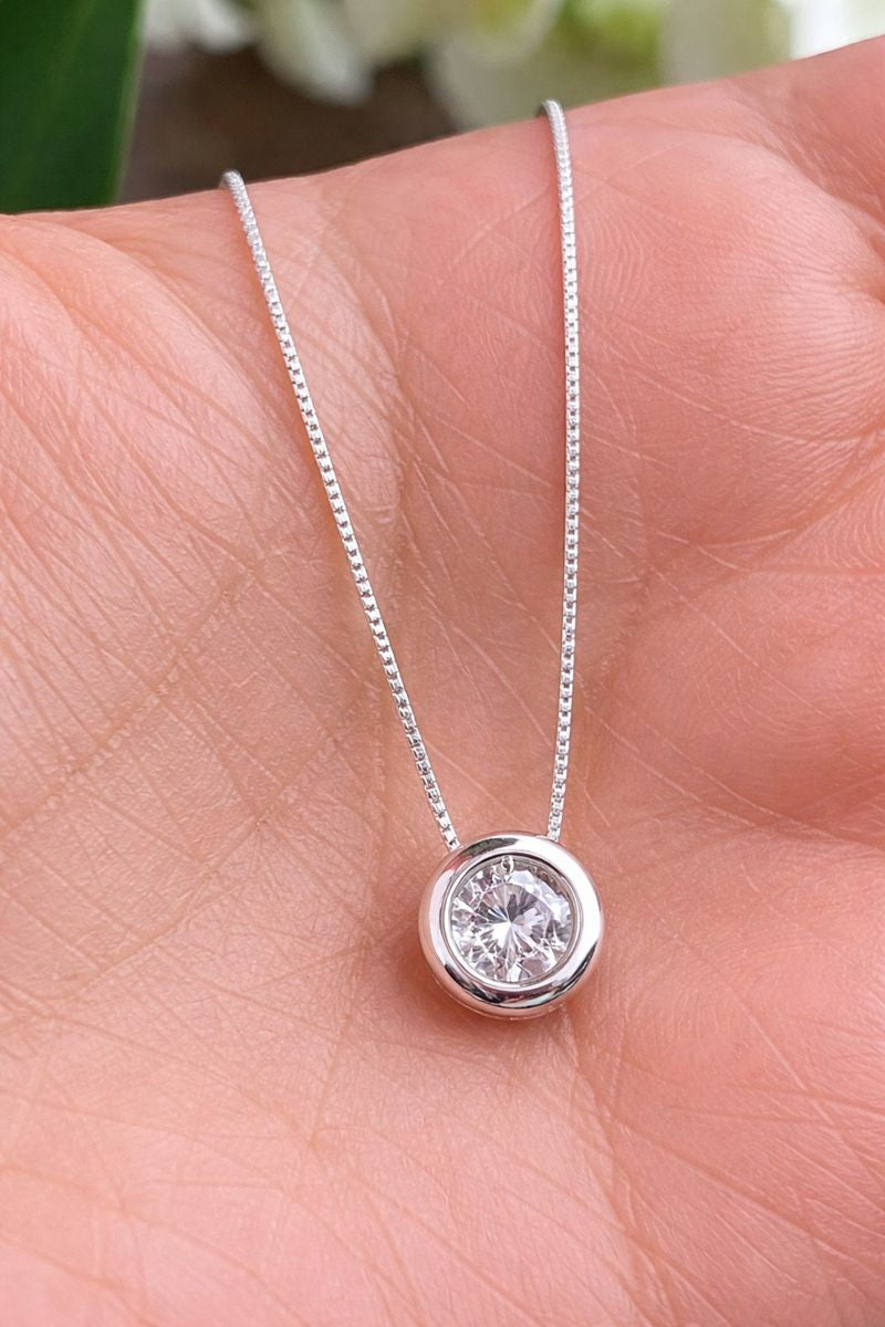 Colar em prata com pingente ponto de luz, composto por uma pedra central lapidada que reflete a luz com brilho intenso e sofisticado. Seu design minimalista e elegante valoriza o colo e combina perfeitamente com qualquer ocasião, do dia a dia a momentos especiais.