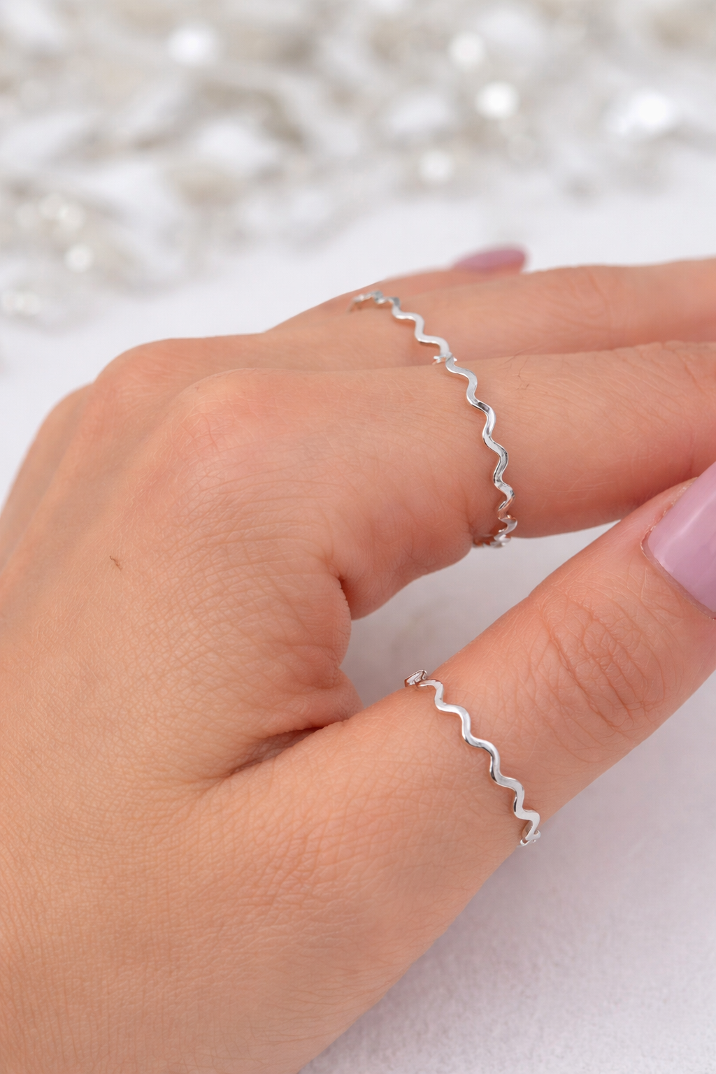 Anel delicado em prata com design ondulado moderno e minimalista. Perfeito para uso diário ou para compor looks elegantes. O formato em onda traz movimento e sofisticação, sendo uma peça versátil que combina com diversos estilos. Acabamento em prata de alta qualidade que garante durabilidade e brilho duradouro.